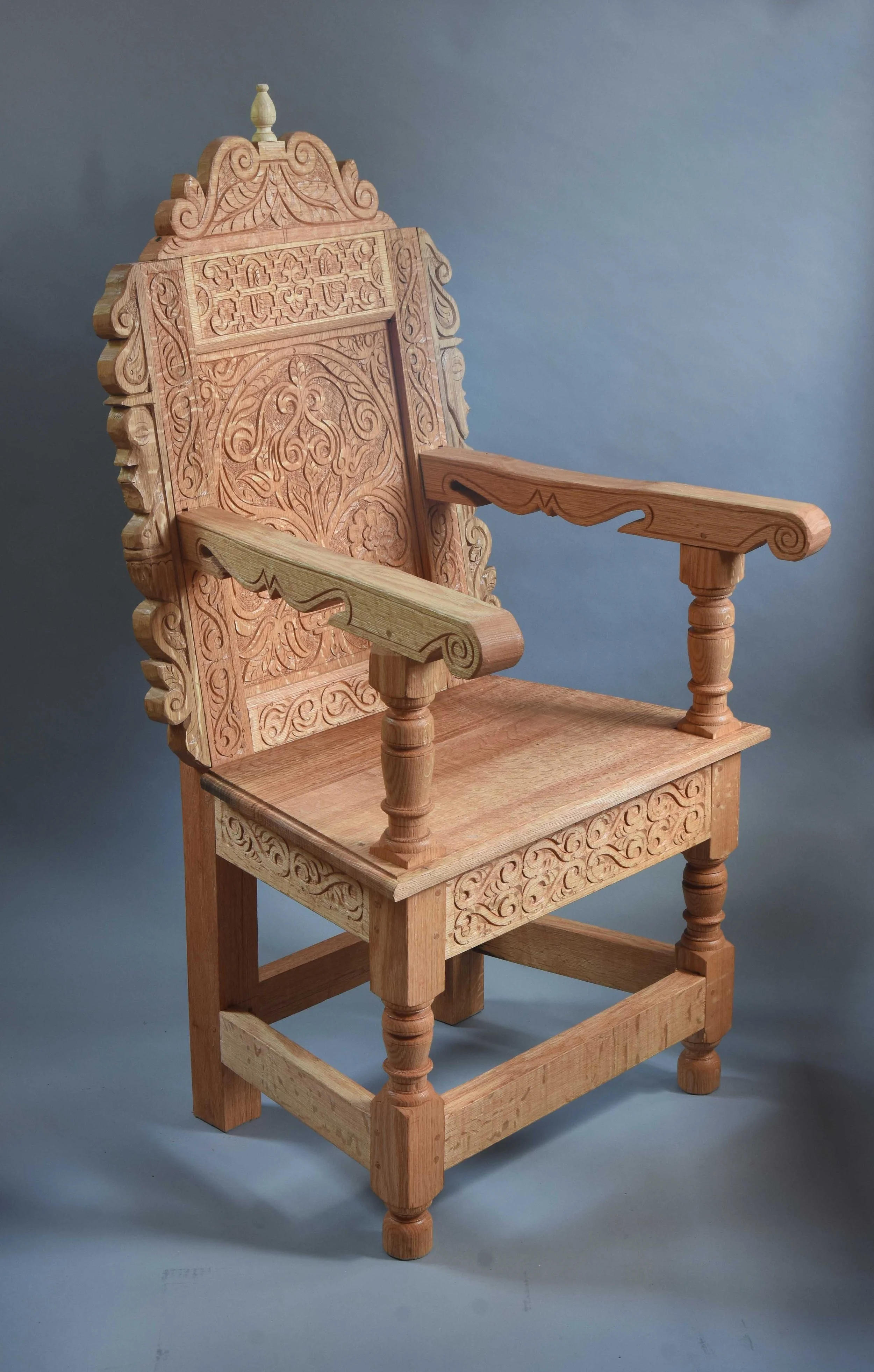 Over the years, I’ve made about 30 wainscot chairs - the large, carved chairs made by joiners in the 17th century. But unless someone orders a wainscot chair, I don’t think I’ll be making another one. And this one - what I think of as my last one - is the best I ever made. I made it in 2020, initially as preparation for a conference - that got cancelled due to the pandemic. So I stayed home that year and among my projects was this chair. It came into the house for a while, but got bumped out due to over-crowding in our small house. I’ve hung onto it for the intervening years, but now it’s time to let it go.